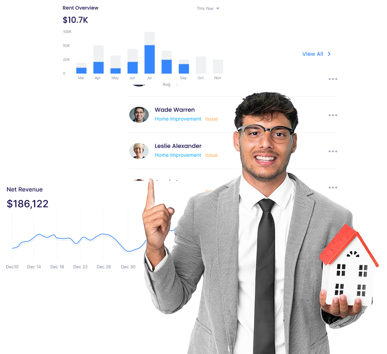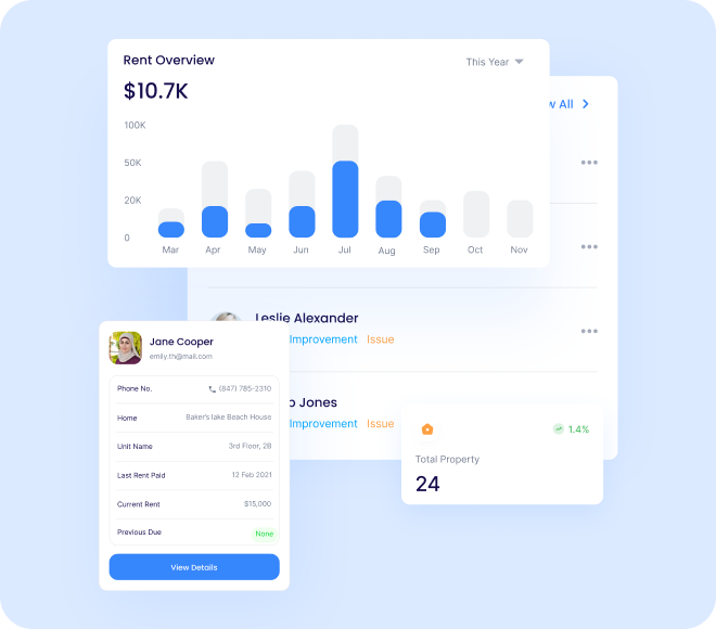 Get a complete overview of your portfolio rent status, arrears, maintenance requests, and performance analytics all in real time.