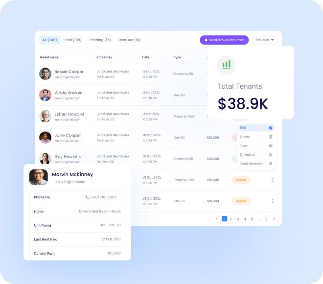 Eliminate manual follow-ups and missed payments. The system automatically generates and sends rent invoices, reminders, and receipts all synced with due dates. Tenants receive instant alerts via chats, SMS or email.